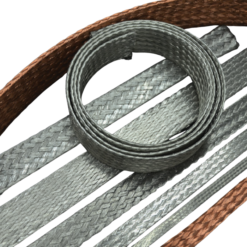 Our flat braids are meticulously engineered using assemblies of single wires ranging from 0.1 mm to 0.2 mm in diameter. They are available in a flattened configuration and are made from high-purity copper with various coating options, including: